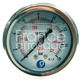 Manomètre radial inox à glycérine Ø63mm - 0 à 2,5 bars