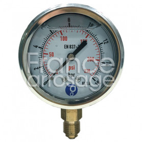 Manomètre radial inox à glycérine Ø63 mm - 0 à 25 bars